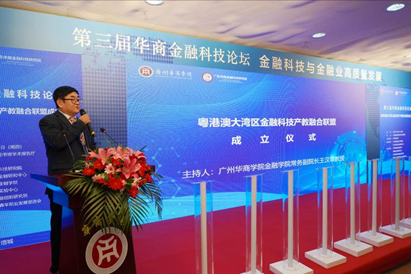 2023年11月23日,由广州华商学院主办,广东华商金融科技研究院、广东乡村振兴金融研究中心承办,广州华商学院金融学院等单位协办的“第三届华商金融科技论坛暨粤港澳大湾区金融科技产教融合联盟成立仪式”在广州华商学院中央图书馆举行。出席本次论坛的有广州华商学院执行校长郭银华教授、副校长兼广东华商金融科技研究院院长刘少波教授、人事处彭强处长、教务处傅道忠处长、科研处董建新处长等校内各部门领导以及来自中山大学、华南理工大学、暨南大学等高校的知名金融学者和包括广州南粤国投融资担保有限公司、TCL金服控股、腾讯、同花顺、美林数据等企业的高管。论坛开幕式由刘少波教授主持。