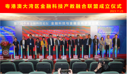 本次论坛的一项重要内容是举行“粤港澳大湾区金融科技产教融合联盟”成立仪式。主旨演讲结束后,金融学院常务副院长王汉章教授主持了该仪式并宣读联盟发起单位名单,共22家单位。