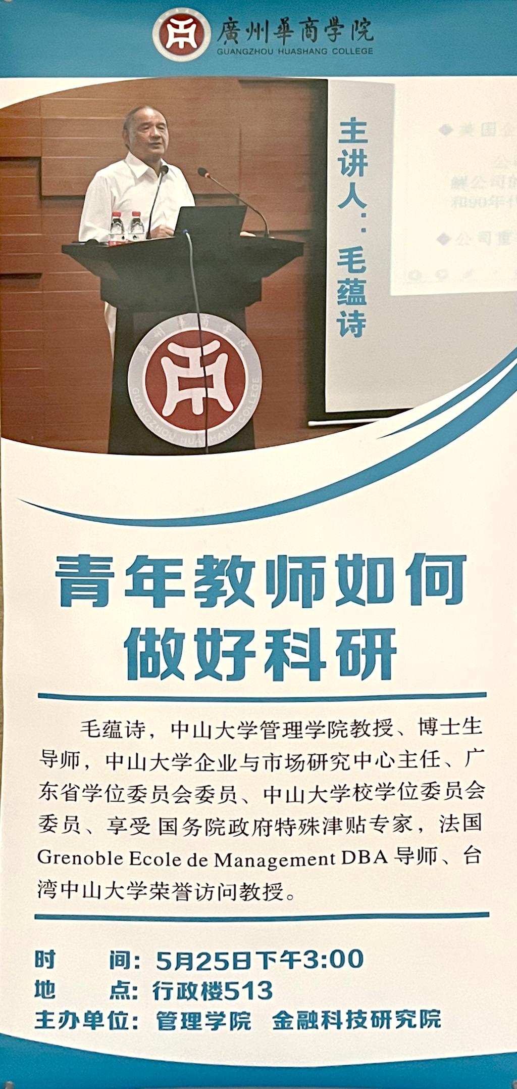 主讲人简介:毛蕴诗,中山大学管理学院教授、博士生导师,中山大学企业与市场研究中心主任、中山大学校学位委员会委员、享受国务院政府特殊津贴专家,法国Grenoble Ecole de Management DBA导师、台湾中山大学荣誉访问教授。兼任《经济管理》期刊特聘学术顾问,《管理科学学报》、台湾《中山管理评论》、《学术研究》、《中山大学学报》(社会科学版)等多家杂志编委。历任国务院学位委员会工商管理学科评议组成员、国家自然科学基金管理学科评审组成员、武汉大学校学术委员会委员、管理学院副院长,中山大学管理学院院长、广东省政协常委、广东省政府参事、广东省经济学会副会长、第十至十二届全国政协委员、广东省学位委员会委员。